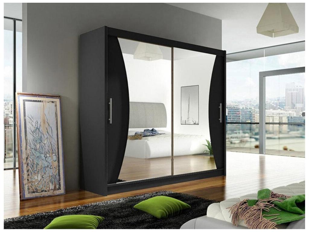 Armoire Chicyla 124 Noir 215x180x57cm Portes d'armoire Glissement MIGL38573